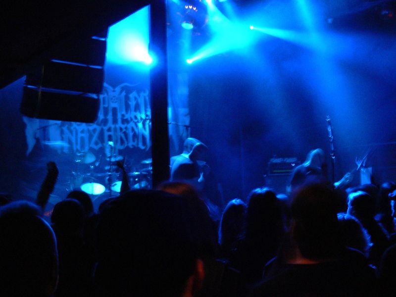 lunedì 5 dicembre 2011VIIMEISET VERET SAATANALLE - THE FINAL HOLOCAUSTInformazioni Data: 02/12/2011 Luogo: Viimeiset Veret Saatanalle, Turku, Klubi, Finlandia Autore: ticino1 Scaletta Grunt (disdetto) Sacrilegious Impalement Enochian Crescent (disdetto) Satanic Warmaster Impaled Nazarene Aristocrazia Webzine si sacrificò per l'ennesima volta sull'altare del metallo estremo per potere soddisfare la sete di racconti dei suoi lettori. Turku è la terza città più grande della Finlandia e si trova circa a 180 chilometri a ovest di Helsinki. Come questa è pure lei una città portuale. Con il treno la si raggiunge comodamente in circa due ore. Qualche consiglio per coloro che viaggiassero su questa tratta sui binari: uno, acquistate il biglietto per tempo. Non potete comunque comprarne uno per qualunque treno. Vale solo per quello che parte a un'ora precisa di quel giorno e vi saranno designati dei posti fissi. I numeri dei sedili nella carrozza sono segnati o sul loro fianco oppure sul pavimento. Due, tenete sempre d'occhio l'ora. Gli annunci sono sovente solo acustici e non sempre chiari. Devo essere onesto... la stazione di Turku dove attendo ora la partenza verso Helsinki non ha l'aspetto di quella in cui sono arrivato ieri sera. Qualcosa non mi torna. Che sia dovuto al fatto che era notte? Mah! Ho una fortuna boia. L'albergo in cui ho la stanza è quasi in faccia al locale in cui avrà luogo il massacro. Come se non bastasse è pieno di ristoranti, bar e negozi. Se avrete con voi la ragazza, lei saprà sicuramente come passare il tempo nelle decine di boutique dei dintorni e voi avrete parecchie borse da portare. Consiglio veramente la catena di pizzerie Koti Pizza. Si tratta definitivamente di un'interpretazione finnica della specialità italiana. La quattro stagioni, per esempio, è decorata con tonno, gamberetti, prosciutto cotto e funghi freschi. Queste pietanze sono comunque non male e costano, compresa una bibita, dieci euro e novanta. Sono arrivato proprio ora a quella stazione dove sono sceso ieri sera. È un sobborgo di Turku. L'annuncio, come detto prima, non era chiaro. Avrei dovuto scendere una più avanti, a Turku; non si smette mai d'imparare. Vabbe', sedici euro di taxi buttati. Il Klubi è definitivamente il tipo di locale che normalmente ospita altri tipi di manifestazione. Nel centro si trova l'immancabile pista da ballo, delimitata da una ringhiera che offre posti a sedere da un lato e dietro da un grande quadrato riservato al DJ o al tecnico del suono. I prezzi erano clementi; cinque euro per una birra sono ancora nel limite dell'accettabile. La tassa per il guardaroba, in Finlandia è usanza consegnare la giacca prima di entrare, era compresa nel prezzo del biglietto questa volta. All'entrata vidi Tomas, socio di quella combriccola di pazzoidi rappresentanti la Kvlt di Helsinki, con la sua bancarella ben fornita. Aveva un aspetto poco fresco e al primo momento non mi riconobbe. Mi raccontò di avere avuto una serata dedicata all'abbondante consumo di birra, di avere dormito poco e di essere in più stanco a causa del viaggio e del lavoro per la preparazione di questa manifestazione. Interrompetti la conversazione perché sentii le prime note provenire da sopra. Fui un poco perplesso... perché erano i finlandesi Satanic Warmaster ad aprire la serata? I signori, li vidi già in ottobre a Helsinki, erano nuovamente allegri e osannavano abbondantemente Bacco e i suoi piaceri. Il pubblico non era numeroso, malgrado abbia notato che arrivasse da tutti gli angoli del paese. A questi piacque così e il set fu allora intrattenimento puro. La platea mostrò di conoscere parecchi testi e li scandì a squarciagola. Per la cover di "Black Metal" dei Venom il cantante invitò un ragazzo del pubblico a partecipare sul palco per il coro. Chi ha detto che gli scandinavi sono freddi? Durante la pausa scoprii in un angolo la "bancarella" degli Impaled Nazarene. Due magliette appese alla parete per mostrarne i due lati e un tavolino attorno cui Mikka e i suoi commilitoni vuotavano allegramente un bicchiere dopo l'altro. Le pause erano stranamente lunghe e musicalmente accompagnate da pezzi ambient. Mi chiesi se un qualche gruppo suonasse di nascosto e che nessuno se ne fosse accorto. Sul palco furono montate delle croci rovesciate di cui la parte nell'aria era appuntita, pronta per infliggere una morte lenta e atroce a qualche vittima. La punta è spinta nell'ano e, attraversando le viscere senza ferirle, esce fra il collo e la spalla. La fine arriva piano piano e dolorosa. Dubitai che questa decorazione fosse di una delle formazioni italiane attese ieri sera. Infatti il pubblico accolse i Sacrilegious Impalement, altro gruppo locale, con entusiasmo. Anche se la musica non mi disse nulla, i signori, assolutamente più ebbri dei loro predecessori, offrirono una scena ben fatta, anche se forse troppo artificiale, sì, quasi da "poser". Davanti al palco la gente impazzì e si lasciò andare di tanto in tanto. Non avevo quasi più nervi per trovare come impostare il mio nuovo apparecchio fotografico. Durante questo litigio tecnico vidi passare Mikka per andare sul palco. Ora ne ero sicuro: Grunt e Enochian Crescent non avrebbero suonato! Già capeggiava la bandiera degli Impaled Nazarene quando Jussi e la sua squadra si presentarono al pubblico, introducendo allo stesso tempo i mattatori della serata. I presenti davano già allora i numeri, gridando a pieni polmoni "Saatana vittu perkele!" o "Sadhu Satana!". Appena i musicisti apparvero sul palco con i loro strumenti alla mano, davanti allo stage si aprì l'Inferno. Quasi ogni pezzo fu accompagnato da "circle pits" sempre più rabbiosi e brutali. Qualche idiota ritenne opportuno dare delle spallate in rincorsa a ragazze (!!!) e a ragazzi appoggiati alla transenna. Un altro non ebbe nient'altro di meglio da fare che tirare qualche cazzotto a dritta e a manca. Questi comportamenti portarono quasi a una rissa che il servizio di sicurezza p